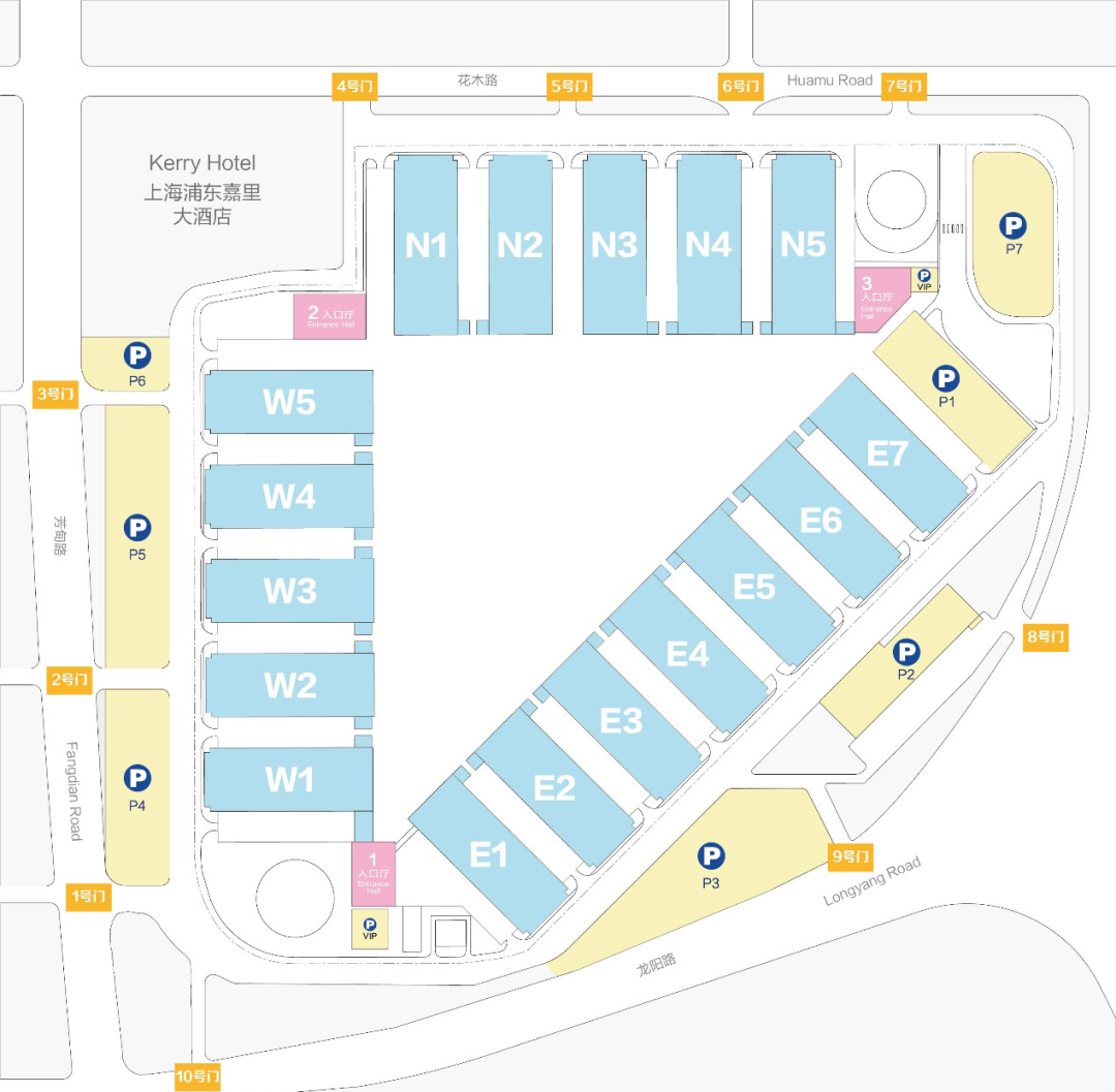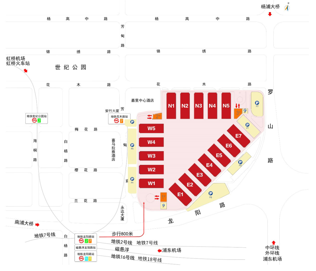 上海新國際博覽中心 P1 立體停車場,即可抵達,下車后可直接抵達展館。